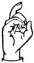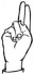 На ћирилици написано ИРИНА БЕТЕГАЛО састоји се из 13 слова [?]. Исписано ћириличном једноручном азбуком за глувонеме: